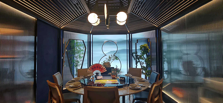 3、環(huán)境氛圍照明設(shè)計(jì),這是餐飲空間設(shè)計(jì)進(jìn)入到藝術(shù)品位的高級(jí)階段了。這時(shí)候的燈光設(shè)計(jì)包含了照明和色彩心理學(xué)、環(huán)境陳設(shè)藝術(shù)等多種美學(xué)領(lǐng)域,照明燈具的外觀款型也成了燈光設(shè)計(jì)的重要工作,燈具基本上都需要專屬定制,必須完全符合品牌的調(diào)性,定制的燈具也是整個(gè)空間用餐氛圍的重要組成部分。通過(guò)以光與色彩營(yíng)造出符合顧客心理需求的氛圍,追求更高的生活品質(zhì)。品深餐飲設(shè)計(jì)多年服務(wù)的杭幫菜品牌——二小姐的店.觀瀾店,整個(gè)照明完全與空間氛圍融為一體,讓顧客流連忘返,嘖嘖驚嘆!