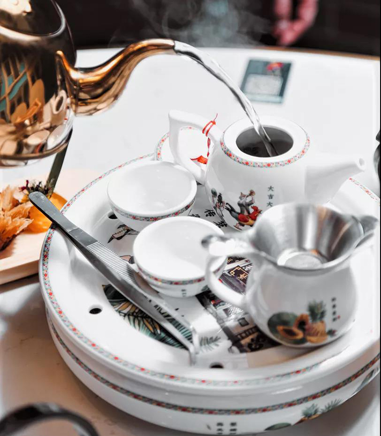 全案設計精細到連門店為顧客準備喝水的茶具都統一在品牌系統內,品牌元素在每一個環節都出現,在每一個門店物料上都應用,品牌的宣傳在門頭招牌、空間裝飾,員工服飾上反復出現。餐飲門店形象要鮮明,餐飲全案設計要先行!