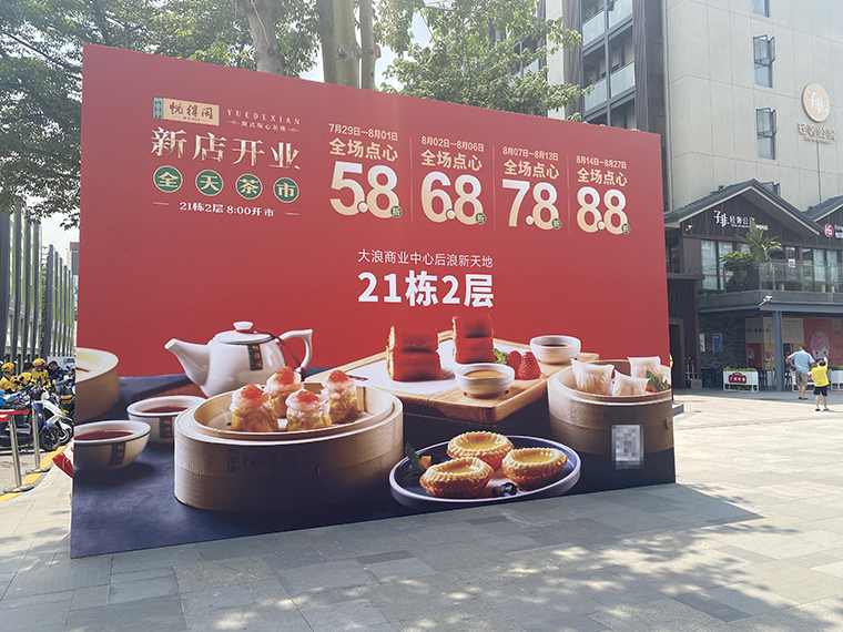 開業促銷活動頭三天必須把客人吸引進來,力度要狠,折扣要大。品深餐飲全案服務的悅得閑廣式點心茶樓,每家新店開業的頭3天都是5.8折,力度非常大,對顧客很有誘惑力,吸引力。悅得閑茶樓從2019年11月份到2021年9月的短短2年時間內,在深圳已經開了10家店,每家店生意都很火爆,非常值得餐飲同行學習!
