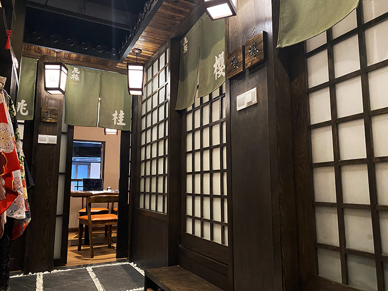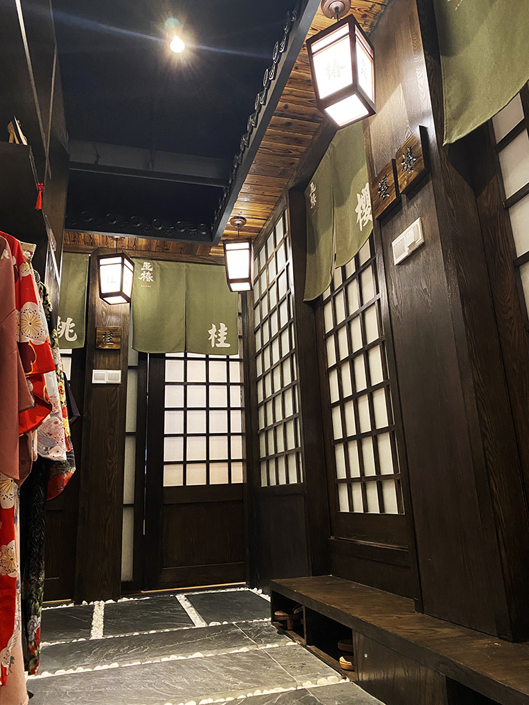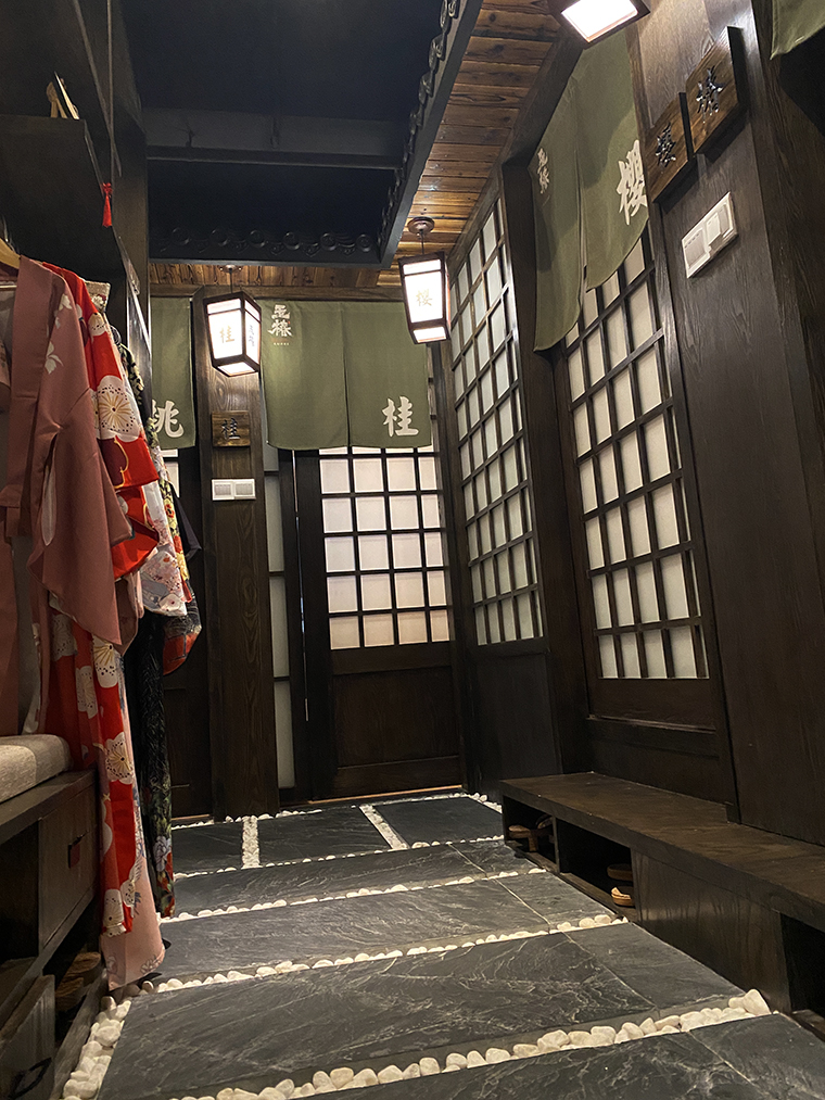 二樓除了必備的洗手間、儲(chǔ)物柜外,還設(shè)置了和服展示區(qū),這是餐飲娛樂(lè)化的一大重要趨勢(shì)。