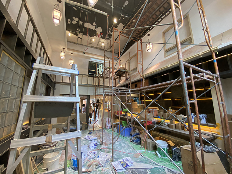 玉椿燒鳥居酒屋首店位于深圳的餐飲網(wǎng)紅高地——車公廟十畝地正對(duì)面。門店之前是一家中餐的后廚的全部空間及部分包間,其中一半的面積屬于上一家餐廳自己搭建的二層??臻g結(jié)構(gòu)非常復(fù)雜,地面高地不平,尤其是搭建部分的1層,2層實(shí)際高度不到2.5米,心理感受很逼窄,這個(gè)場(chǎng)地極為