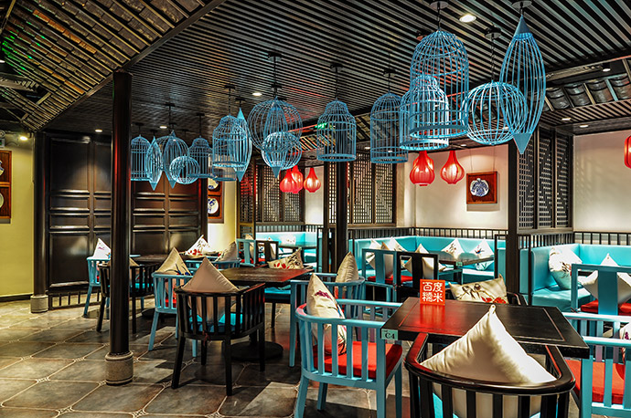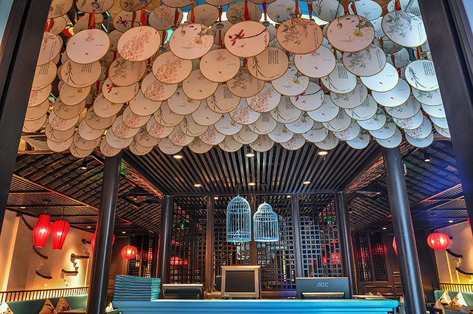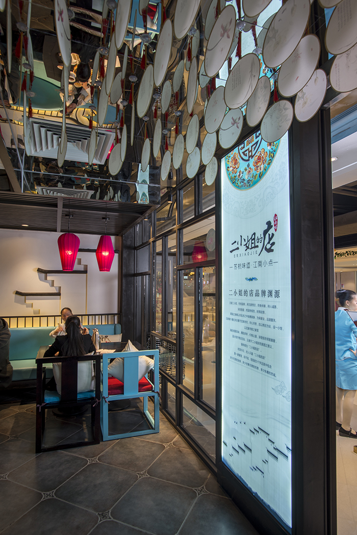 有了識別度高的平面形象,我們更要有強(qiáng)烈的有鮮明的主題風(fēng)格,或清新、或時尚歡快的空間裝飾,所以在空間設(shè)計上,我們充分依托中式風(fēng)和蘇繡元素。