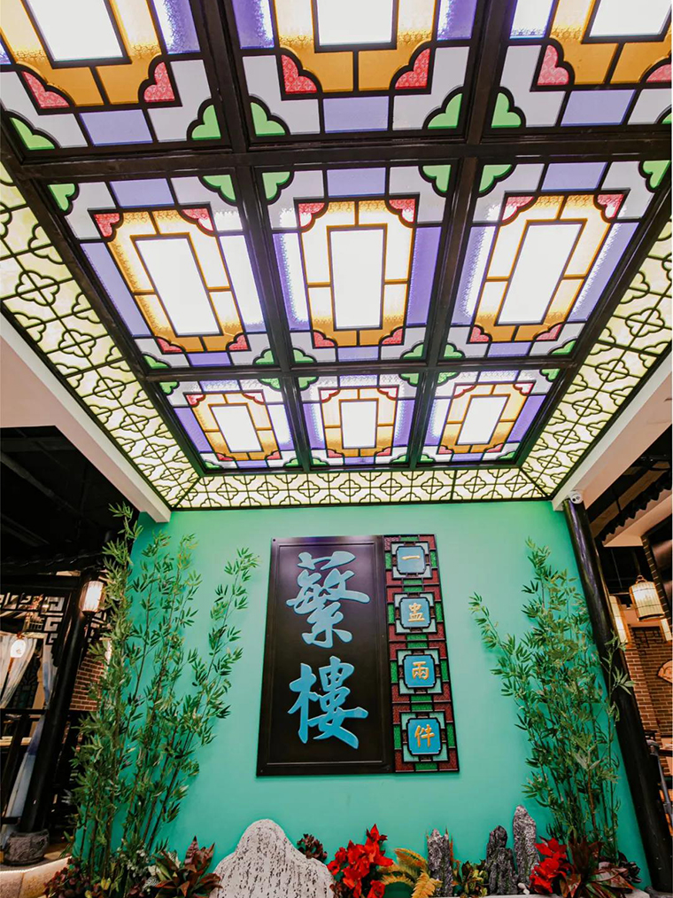 ,通過(guò)“紅配綠,大紅配大綠”這種大膽的色彩運(yùn)用,將“得閑飲茶”的廣式休閑飲食生活文化營(yíng)造的非常鮮明,時(shí)尚又極富歷史厚重感,深受廣大顧客的喜愛(ài),為門店創(chuàng)造了持續(xù)穩(wěn)定的客流。