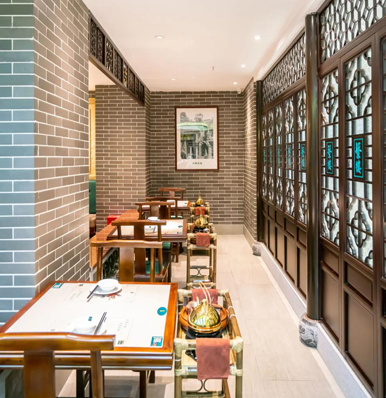 廣式點(diǎn)心茶樓最早可追溯到清朝末年,廣州開放為通商口岸,至清光緒年間,廣州商業(yè)的七十二行,酒樓茶室占最大的比重,廣州已成為中國(guó)茶室酒樓消費(fèi)最大的城市,在這期間廣式茶樓也吸收大量外來(lái)元素融入并內(nèi)化,形成獨(dú)特的元素和獨(dú)有的色彩。如:色彩鮮亮廣式花窗,顏色厚重有歷史感的廣式青磚,將這些有歷史感的色彩融入到茶樓空間裝飾設(shè)計(jì)中,能很好地給消費(fèi)者傳達(dá)出一種厚重,悠遠(yuǎn)的歷史感!